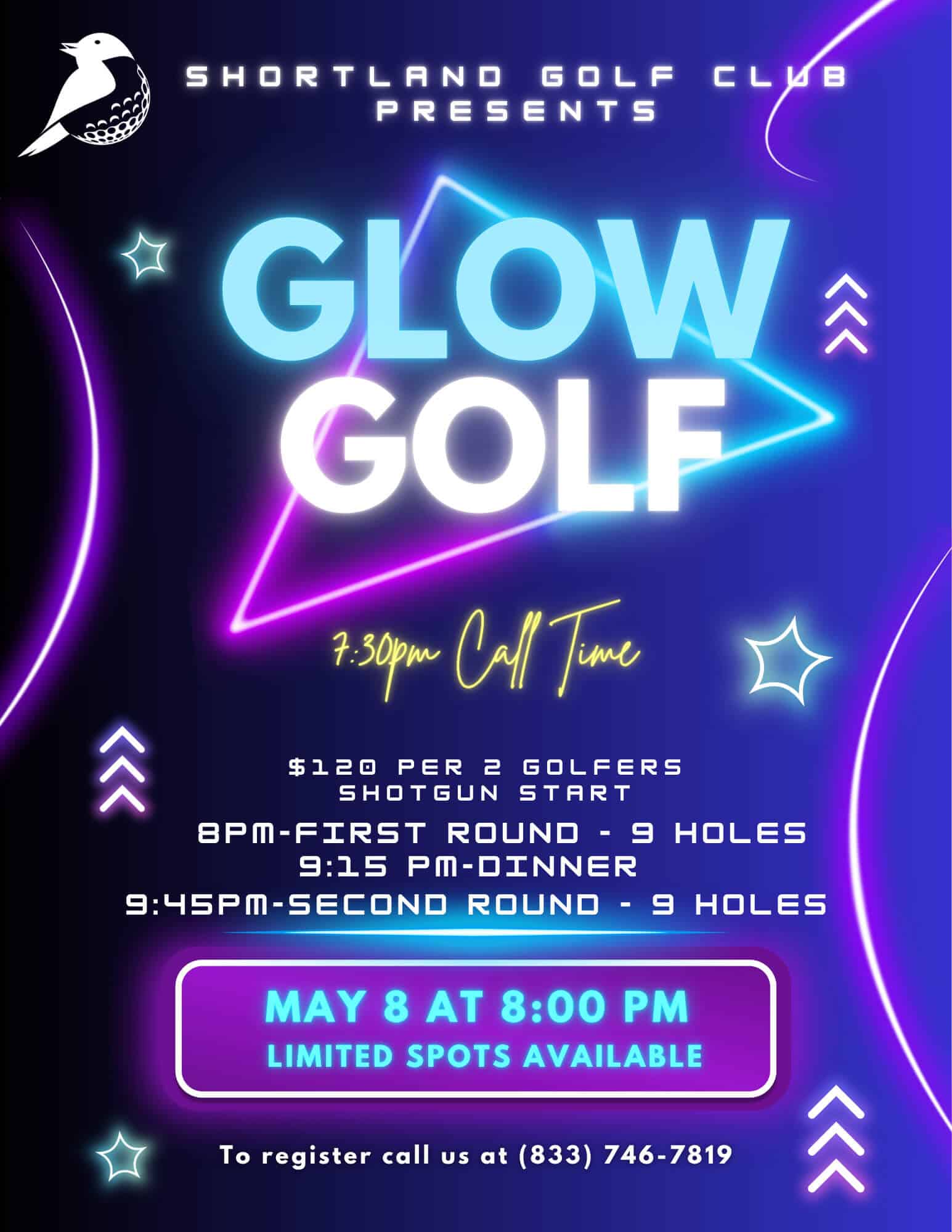 $120 per 2 golfers Shotgun Start 7pm First Round - 9 Holes 8pm Dinner - BBQ Sliders 8:30pm Second Round - 9 Holes To register call (833) 746-7819